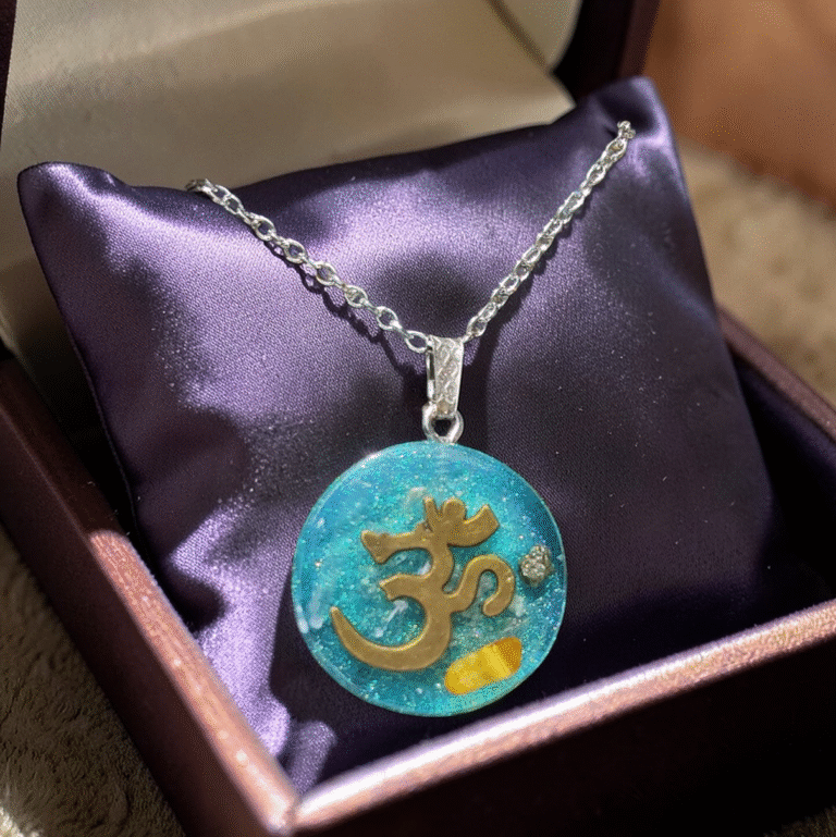 Pingente Orgonite | Simbolo OM | Proteção e Prosperidade | Colar aço inox